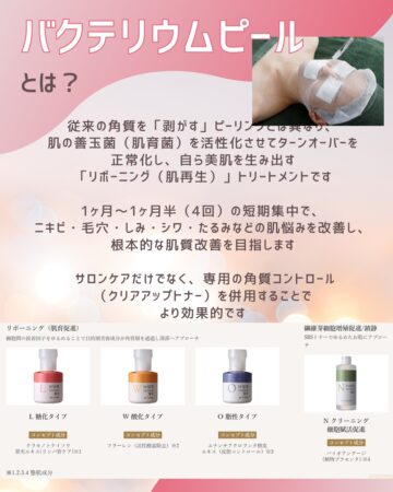 小郡市・久留米市・筑紫野市・鳥栖市エリアでも注目されているのが、“育てるピーリング”という新発想のバクテリウムピールです。