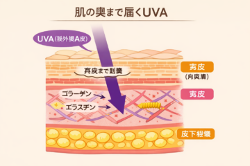 紫外線の中でも特にUVAは、肌の奥まで届き、コラーゲンやエラスチンに影響を与えます。